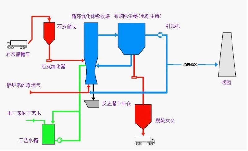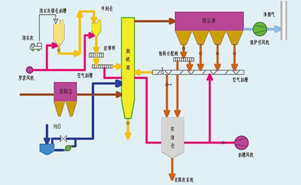 脫硫吸收和產物處理均在干狀態(tài)下進行,該法具有無污水廢酸排出、設備腐蝕程度較輕,煙氣在凈化過程中無明顯降溫、凈化后煙溫高、利于煙囪排氣擴散、二次污染少等優(yōu)點,但存在脫硫效率低,反應速度較慢、設備龐大等問題。